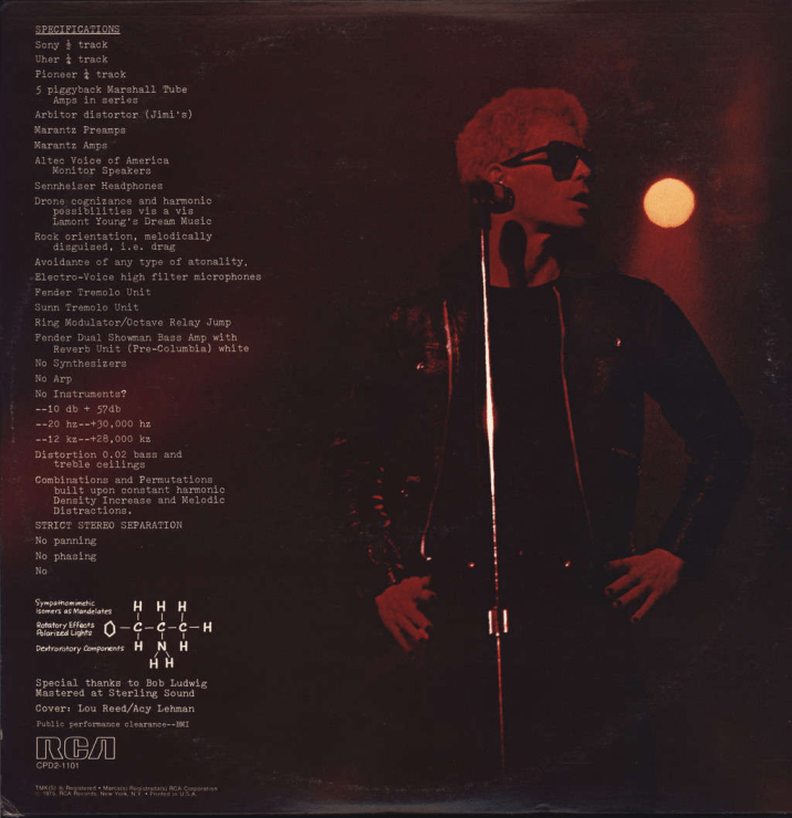 “…it shows integrity – a sick, twisted, dunced-out, malevolent, perverted, psychopathic integrity, but integrity nevertheless… It is the greatest record ever made in the history of the human eardrum… If you ever thought feedback was the greatest thing that ever happened to the guitar, well, Lou just got rid of the guitars.”